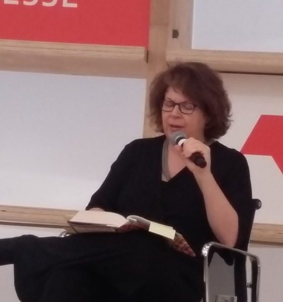 Beinahe ist mir dann doch noch eine Herzensautorin entgangen. Den Termin von Krimiautorin Dominique Manotti hatte ich glatt übersehen. Dabei ist die mittlerweile 76 Jahre alte Französin, die sich sehr gesellschaftspolitisch engagiert, eine meiner Heldinnen. Zum Glück besorgte mir die Pressedame ihres Verlags, Emily Laquer von Ariadne, noch ein Exemplar von „Kesseltreiben“, so dass ich es noch signiert bekam. Sehr, sehr nett!