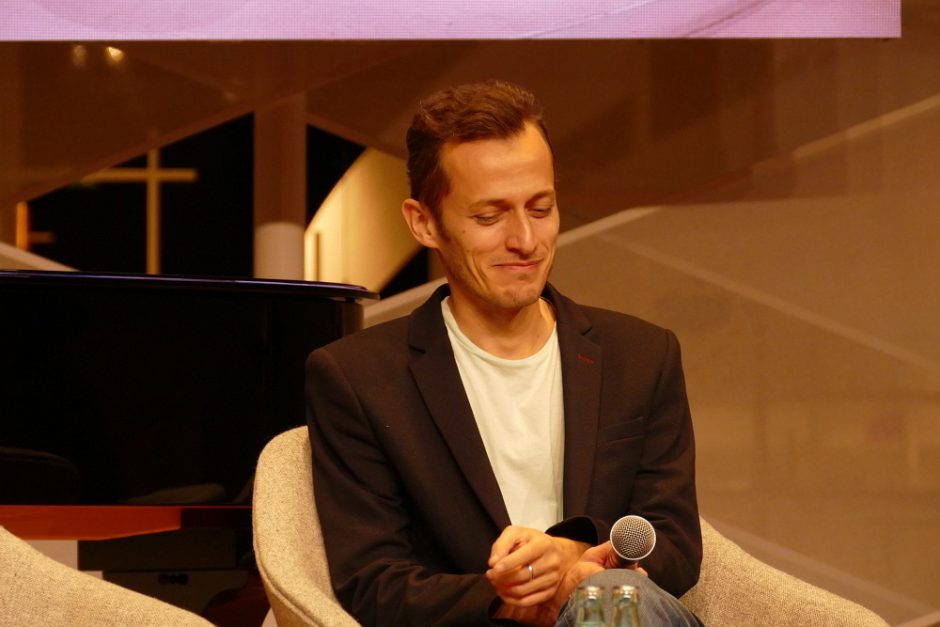 Im Zentrum standen aber natürlich die Bücher und auf zwei Bühnen ihre Autoren. 150 Neuübersetzungen in 70 Verlagen erschienen in Deutschland anlässlich des Gastlandauftritts und erschlossen ein Literaturland, das auch mir völlig unbekannt war. 70 Autoren waren vor Ort. Aka Morchiladze, Naira Gelaschwili, Nana Ekvtimishvili, Archil Kikodze, Lasha Bugadze – ein paar Namen, die ich mir notiert habe, einige ihrer Bücher habe ich mir bereitgelegt. Einziges georgisches Buch, das ich vorab gelesen habe – ich zähle die aus Georgien stammende, deutsch schreibende Nino Haratischwili mal nicht dazu, war „Farben der Nacht“ von Davit Gabunia, der ich auf der Messe auch treffen konnte. Aber meine Neugier ist geweckt.