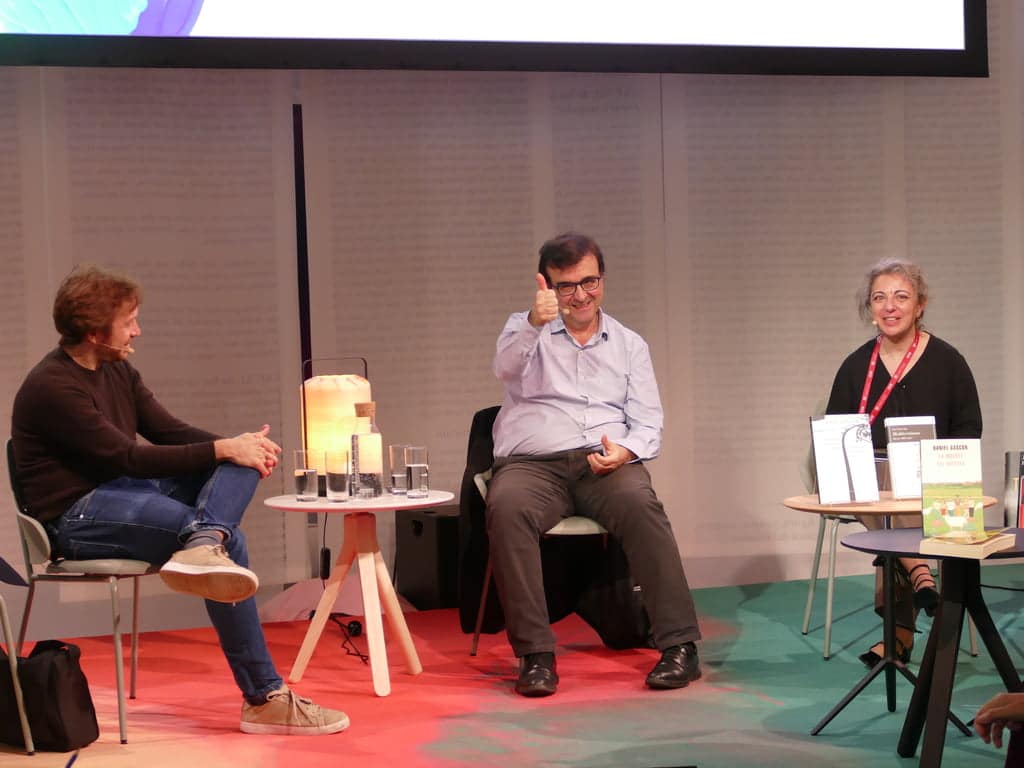 Das zweite Panel war Die Erfindung des Buchs überschrieben. Hier waren Irene Vallejo und Marta Sanz zu Gast. Vallejo feiert (nicht nur) in Spanien mit ihrem Buch Papyrus (Diogenes) große Erfolge und hielt bei der Eröffnungsfeier der Buchmesse eine der Reden. Mit großer Leidenschaft und sehr lebendig erzählte die sympathische Autorin, wie ihre Liebe zum Buch entstand und was uns Bücher heute geben können. Ich traf sie kurz danach noch einmal kurz und konnte mich mit ihr über Papyrus unterhalten. Ich bin nun sehr neugierig auf das Buch.