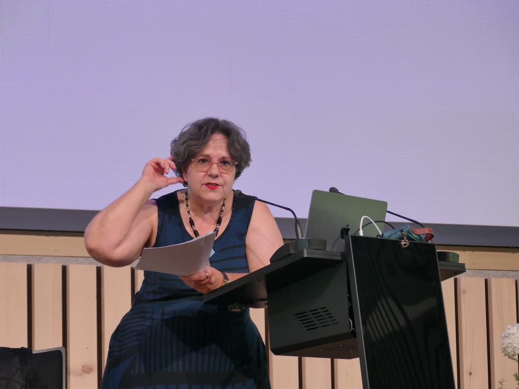 Das ließ sich sogleich beim nächsten Veranstaltungspunkt, der Filmanalyse durch Kultur- und Literaturwissenschaftlerin und Autorin Elisabeth Bronfen überprüfen. Die Vermarktung mit Lolita als Lolly lutschendes, laszives junges Mädchen gelang dem Film von Stanley Kubrick auch durch die Besetzung mit der Schauspielerin Sue Lyon (damals 14) perfekt und machte den Film zum großen Erfolg, trug aber auch entscheidend zum Missverständnis des Romans bei. Bronfen outete sich als absoluten Fan des Films und trug allerhand filmische Remineszensen bei und machte auf besonders gelungene Sequenzen aufmerksam. Das war höchst interessant und unterhaltsam, auch wenn ich persönlich den Film für nicht so gelungen halte, vor allem deshalb, weil er die Ironie des Romans zwar aufgreift, sie aber im Gegensatz zu diesem zur Verharmlosung des pädophilen Humbert Humbert beiträgt, der hier eher wie ein etwas hilfloser, liebestoller Trottel dargestellt wird und nicht als der rücksichtslose, brutale Pädophile des Buchs.