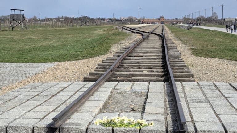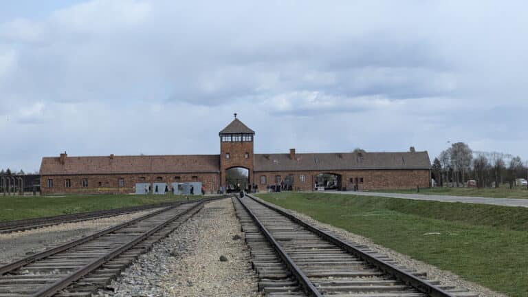 Nun stehe ich also hier. Unter dem kunstvoll geschwungenen Band von „Arbeit macht frei“. Schaue entlang der Schienen auf das ikonisch gewordene Torhaus von Birkenau. Im Gepäck habe ich den Roman „Kaltes Krematorium, Bericht aus dem Land namens Auschwitz“ von József Debreczeni und geschätzt vierzig Jahre des Interesses, des Entsetzens, des ungläubigen Staunens darüber, zu welcher Grausamkeit der Mensch doch fähig ist. Ich kann mich noch sehr gut an den Tag in der Schule erinnern, als im Fach Geschichte eine Filmvorführung anstand. Filmvorführungen waren immer gut, waren Ausnahmen vom Frontalunterricht und außerdem bestanden immer gute Chancen, dass die Videorekorder-TV-Anbindung mal wieder nicht zu den Kernkompetenzen der Lehrkraft gehörte und die Stunde allein mit technischen Problemlösungen vorbeiging.