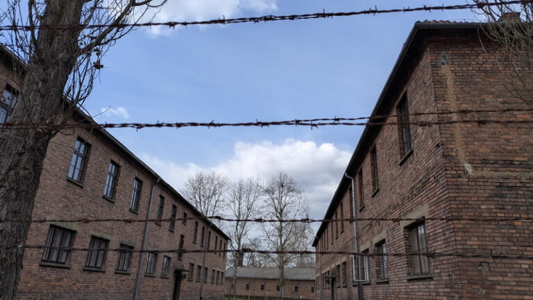 Zunächst geht es durch einen Betontunnel, in dem die Namen ermordeter Gefangener vom Tonband erschallen, leise, eindringlich. Es ist Frühling, trotz der Kälte, die Bäume stehen in Blüte, die Sonne strahlt – die Backsteinbauten sehen von fern fast ein wenig idyllisch aus. Ein Schild „Halt!“, eine Schranke, ein Totenkopf, die typischen Wachtürme – die Frühlingsidylle verschwindet sehr bald. Auschwitz war als Verkehrsknotenpunkt ein idealer Sammelpunkt für die NS-Vernichtungsmaschinerie. Bald gab es 50 Nebenlager. Von den ca. 1,1 Millionen Opfern wurden 865.000 direkt nach der Ankunft im Lager ermordet. Auschwitz steht wie nichts anderes für die Grauen und Schrecken der NS-Ideologie. Auch wenn es darüber hinaus natürlich noch Treblinka, Majdanek, Sobibor und Belzec gab.
